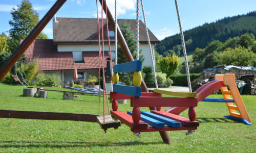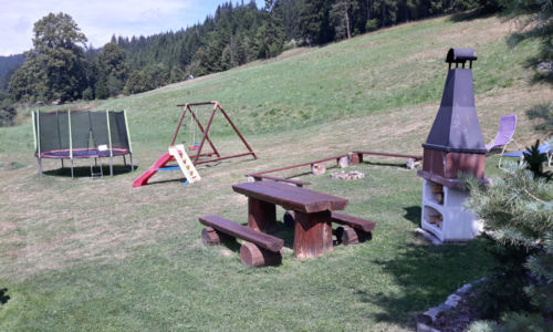 - Stolní tenis, trampolína, houpačky, malé pískoviště a skluzavka