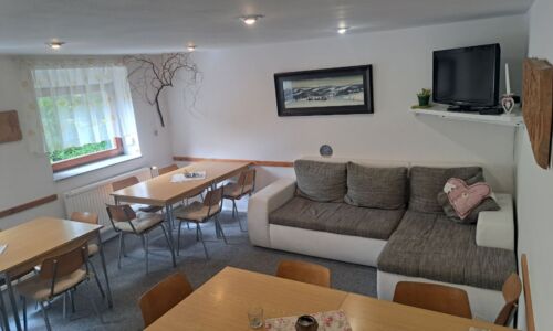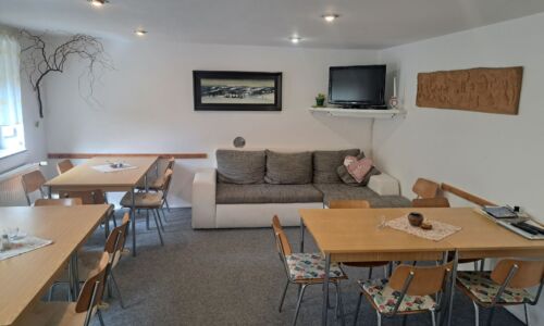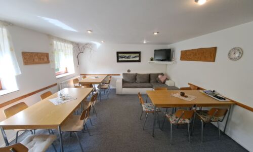 Možnost vaření v plně vybavené kuchyni s jídelnou (myčka, kombinovaný sporák, mikrovlnná trouba, 3 lednice, varná konvice + ostatní základní vybavení).